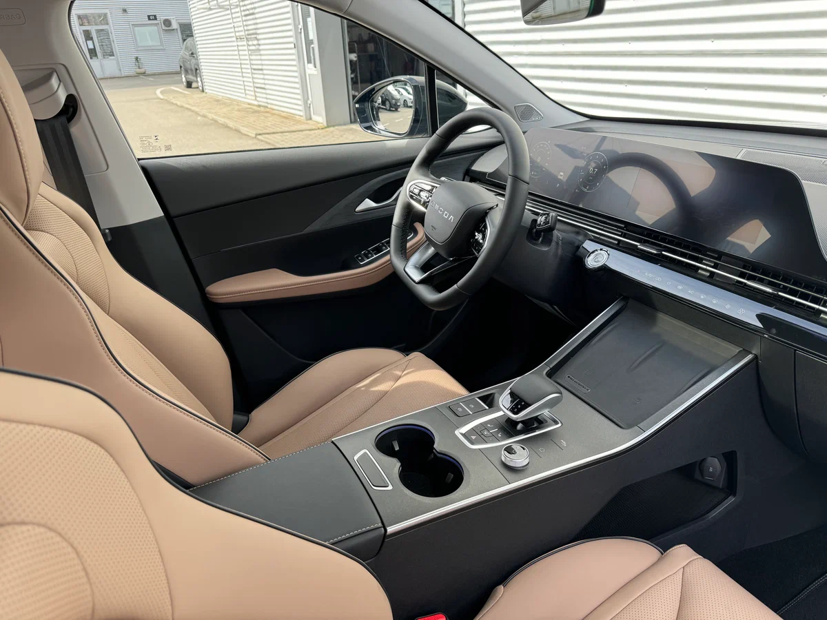 Внутри Omoda умеет удивлять. Два экрана по 10,25 дюйма в едином блоке, аккуратная подсветка, приличная «картинка» интерфейса — визуально салон действительно кажется классом выше. По материалам тоже всё неплохо, хотя на дверях встречается жёсткий пластик — это тот самый компромисс бюджета, который заметен при желании придраться.
