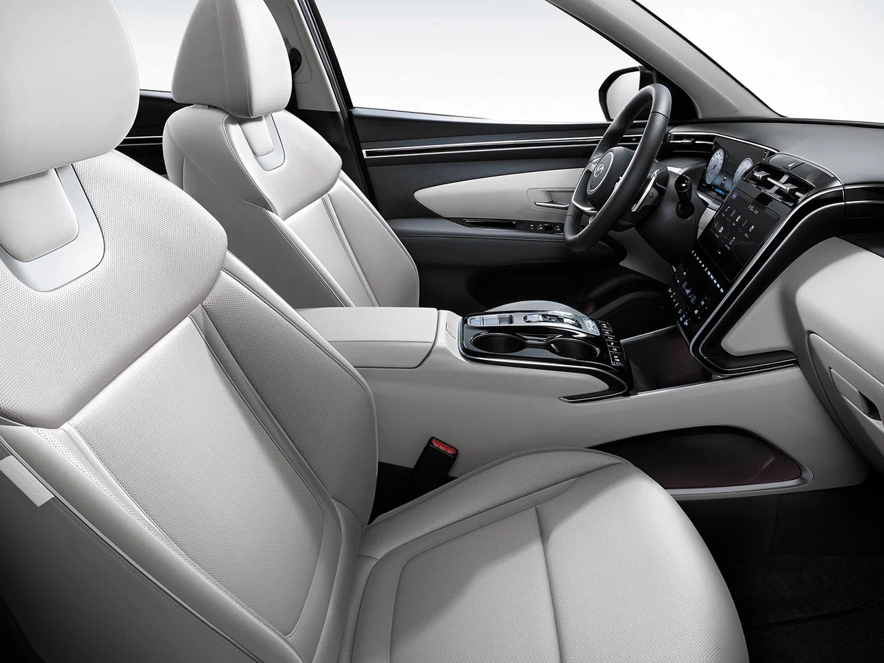 Салон Tucson IV отличается современной архитектурой и эргономикой. Даже в базовой комплектации Classic устанавливаются передние сиденья с подогревом, кондиционер, аудиосистема с поддержкой Bluetooth, USB и AUX, а также электростеклоподъемники всех дверей. Руль регулируется по высоте и вылету, на нем расположены кнопки управления .