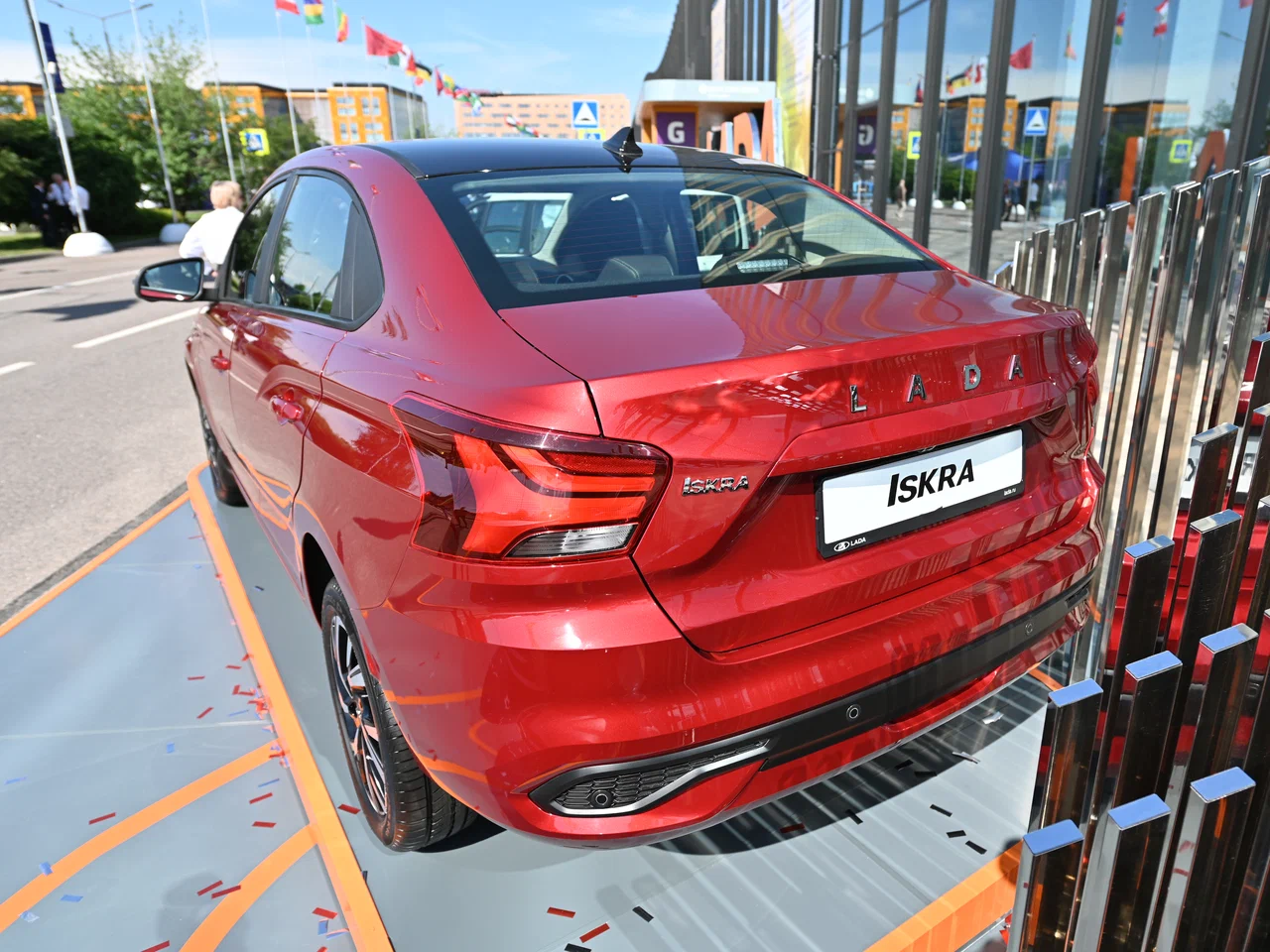 Габариты Lada Iskra делают её удобной как для плотного городского трафика, так и для поездок на дальние расстояния. Длина кузова составляет 4333 мм, ширина — 1777 мм, высота — 1517 мм, а колёсная база — 2603 мм. Клиренс 170 мм позволяет уверенно чувствовать себя на плохих дорогах и при движении по загородным маршрутам. Автомобиль оснащается колёсами размером 185/65 R15.