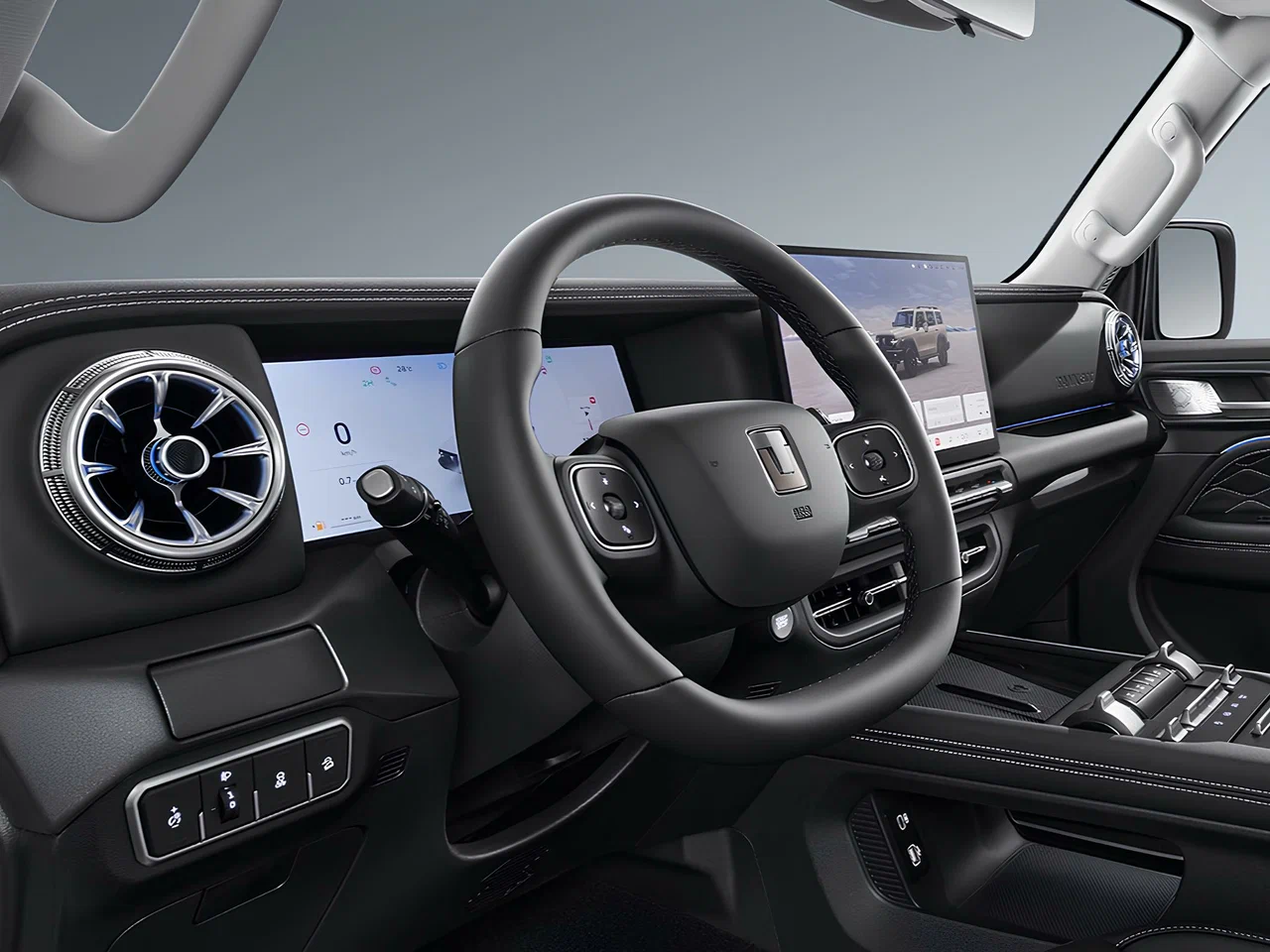 Средний расход топлива по циклу CLTC заявлен на уровне 8,86 л на 100 км, что является сбалансированным показателем для рамного внедорожника с полным приводом. Топливный бак объёмом 80 литров обеспечивает большой запас хода без частых заправок, что особенно актуально в дальних поездках и при выездах за город.