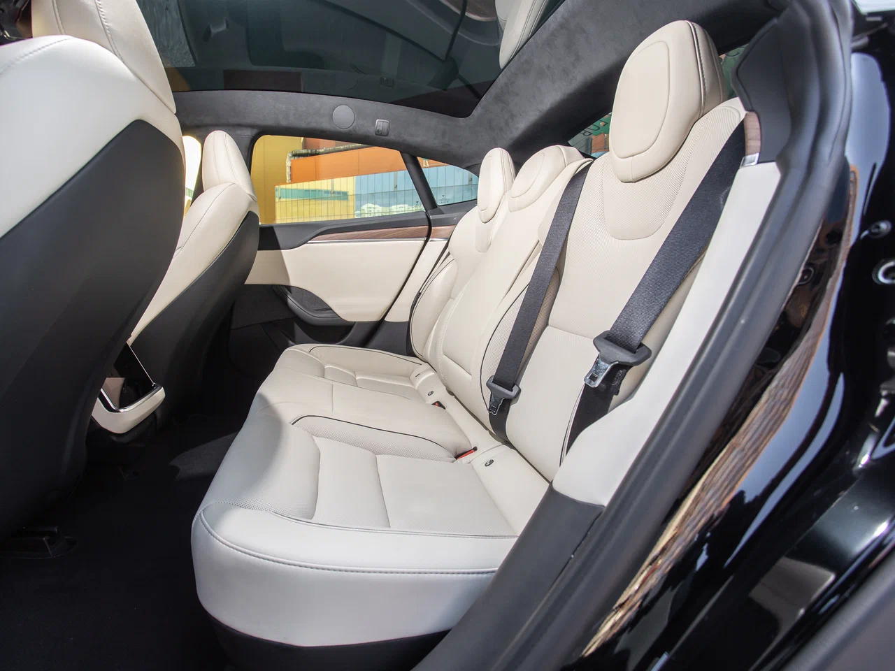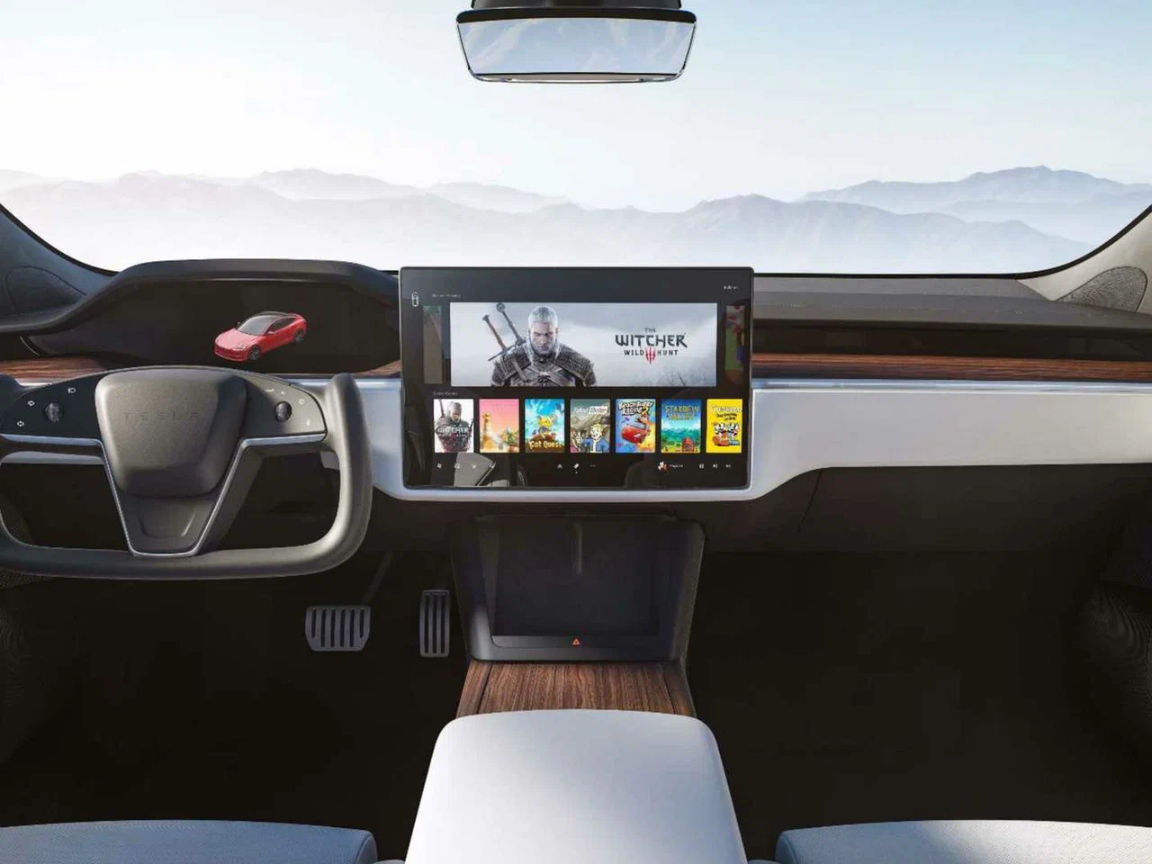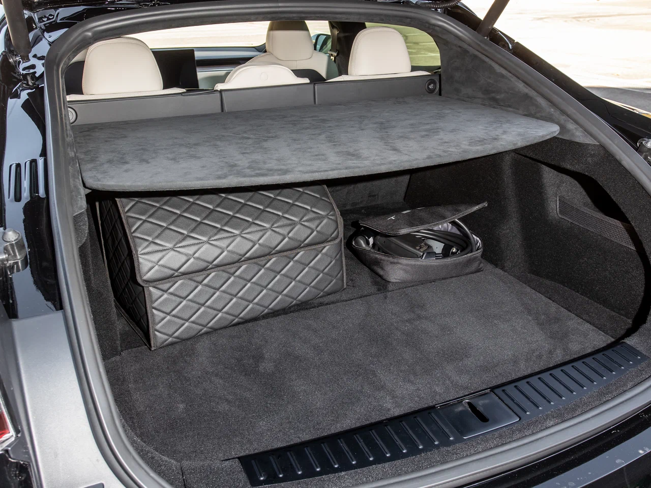 Салон — воплощение минимализма и цифровизации. Главным элементом является поворотный сенсорный дисплей диагональю 17 дюймов с высоким разрешением, управляющий всеми функциями авто. Приборной панели в традиционном понимании нет — ее заменяет цифровая панель за рулем. Рулевое колесо в современных версиях может быть выполнено в виде «йоке» (штурвала). Для развлечения пассажиров предлагается мощная игровая система с производительностью до 10 терафлопс, поддерживающая современные видеоигры. Салон отличается высоким качеством отделки материалов, простором и огромным багажным отделением объемом до 1645 литров.