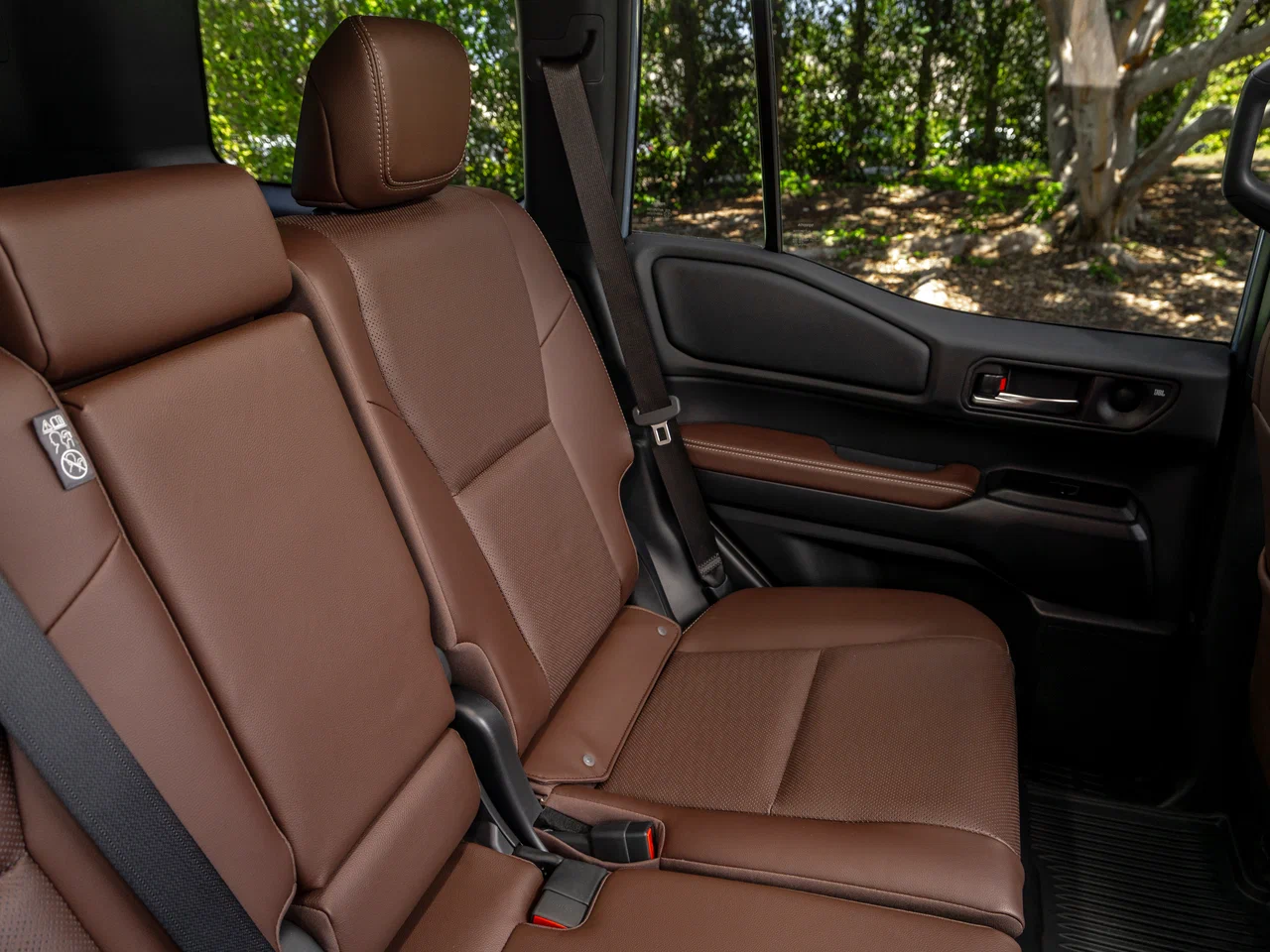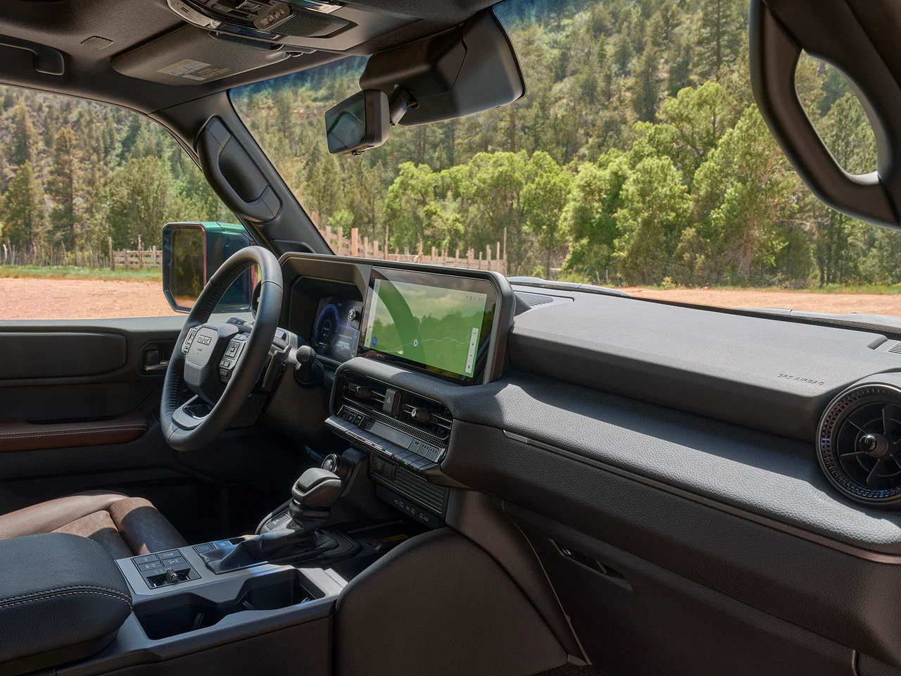Салон версии First Edition выполнен в утилитарно-премиальном ключе с акцентом на долговечность материалов. Он оснащен цифровой приборной панелью и крупным 12.3-дюймовым сенсорным экраном. Ключевая особенность — система кругового обзора с виртуальным изображением подвески и траектории колес (Multi-Terrain Monitor), незаменимая на бездорожье.