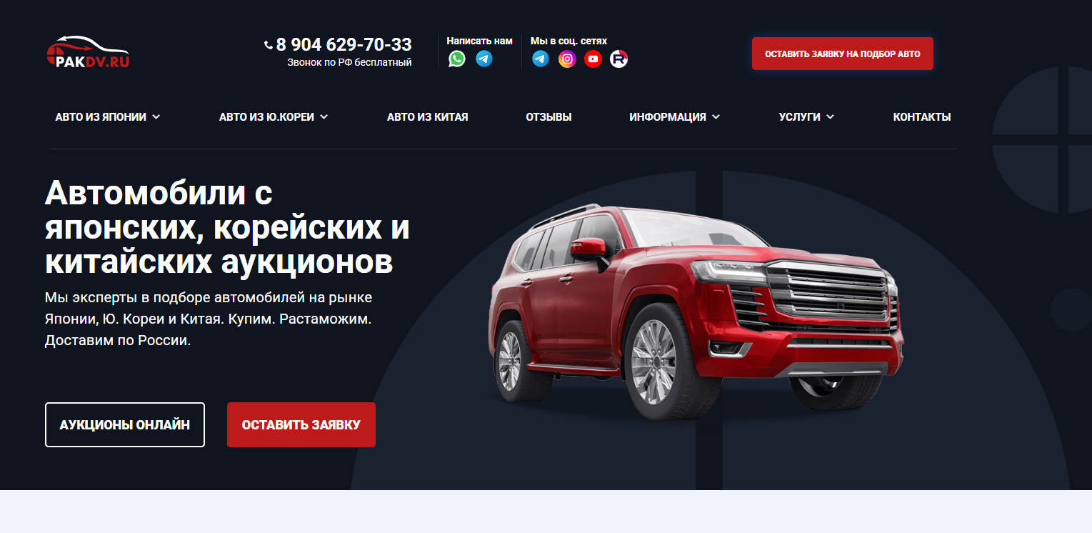 — Подержанные и новые автомобили с аукционов Японии, Кореи, Китая, США, Канады;